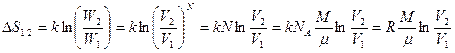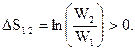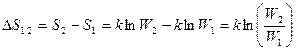 Состояние системы с термодинамической вероятностью W1 в начальный момент времени t1 соответствует энтропии S1=k ln W1. Соответственно в момент времени t2 система имеет энтропию S2=k ln W2. При переходе системы из состояния 1 в состояние 2 энтропия изменится