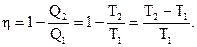 Отметим, что рабочее тело машины Карно при изотермическом процессе 2-3получает тепло Q1 а в 3-4 отдает Q2. Считая тепло Q1 положительным, а Q2 — отрицательным, равенство (8.29) будет иметь вид