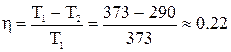 Если использовать в качестве холодильника воду озера (T2≈290К), то