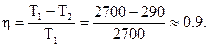 Если в тепловой машине использовать энергию горения бензина, то горячий термостат может быть нагрет до температуры Т1≈ 2 700 К, и