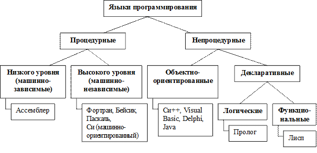 Существующие языки программирования можно разделить на две группы: процедурные и непроцедурные (см. рис. 4.1).