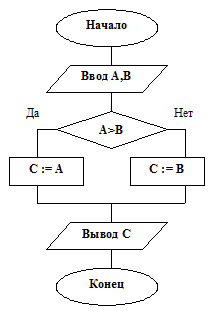 Приведем пример решения задачи: «Из двух чисел выбрать наибольшее».