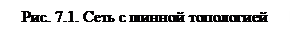 Сеть шинной топологии применяют широко известная сеть Ethernet и организованная на ее адаптерах сеть Novell NetWare, очень часто используемая в офисах, например. Условно такую сеть можно изобразить, как показано