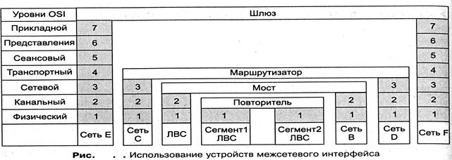 Использование устройств межсетевого интерфейса по уровням управления показано на рис. 10.1.