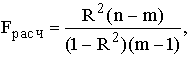 Fрасч также должно быть больше Fтеор при v1 = (m-1) и v2 = (n-m) степенях свободы. В противном случае следует пересмотреть форму уравнения, перечень переменных и т.д.