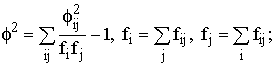 где f2 – показатель средней квадратической сопряженности, определяемый путем вычитания единицы из суммы отношений квадратов частот каждой клетки корреляционной таблицы к произведению частот соответствующего столбца и строки: