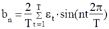 -- параметры колебательного процесса (гармоники) с номером n, в совокупности оценивающие размах (амплитуду) отклонения от общей тенденции и сдвиг колебаний относительно начальной точки.
