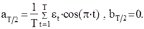 Общее число колебательных процессов, которые можно выделить из ряда, состоящего из Т уровней, равно Т/2. Обычно ограничиваются меньшим числом наиболее важных гармоник. Параметры гармоники с номером n определяются по формулам 36 –38:
