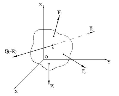 Тогда система сил (F1 F2 F3,….Fn, Q) удет находиться в равновесии и для нее должно выполняться условие Mo=0, т.е. ∑ Mo(Fk) + Mo(Q)=0 Но т.т. Q=-R и обе силы направлены вдоль одной и тойже прямой, то Mo(Q)=-Mo(R) и следовательно: