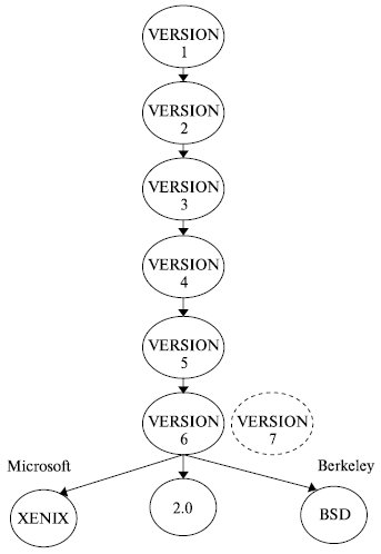 Рис. 2.9. Пример генеалогического дерева версии UNIX