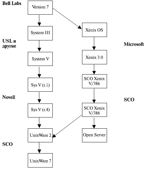Рис. 2.5. Правопреемники исходных текстов UNIX