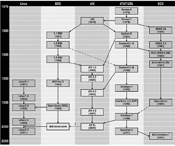 Следующая схема (рис. 2.5) демонстрирует этапы появления основных правопреемников исходных текстов программ АТ&Т UNIX.