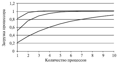 Рис. 6.2. Загрузка процессора при различном числе процессов
