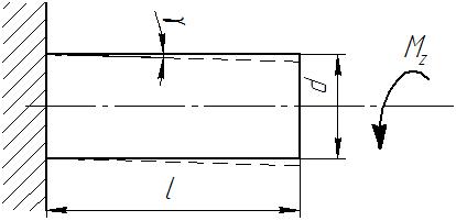 При действии крутящего момента на жестко заделанную балку сечение балки поворачивается на максимальный угол γ, аналогичный углу поворота при сдвиге (Рис. V.3).