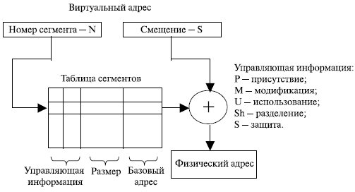 - простота организации совместного использования фрагментов программ различными процессами, например, библиотеки совместного доступа могут быть оформлены в виде отдельного сегмента, который может быть включен в виртуальное адресное пространство нескольких процессов.