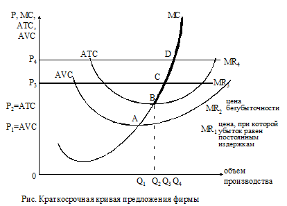 Равновесное положение чистоконкурентной фирмы в краткосрочном периоде. В условиях совершенной конкуренции предельный доход фирмы (MR) и цена (Р) равны.