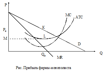 На рис. средняя прибыль монополии представлена вертикальным отрезком KL, а общая прибыль — площадью прямоугольника KLMPE.