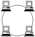 В этой топологии только один компьютер может посылать данные в конкретный момент времени. При одновременной попытке двух и более компьютеров переслать данные, все они получат отказ и будут вынуждены ждать случайный интервал времени, чтобы повторить попытку.