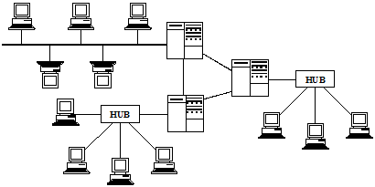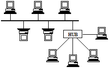 Смешанная топология Star Bus (звезда на шине) объединяет топологии Шина и Звезда (рис. 4.5).
