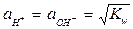 При Т = const Kw = const и не зависит от концентрации ионов Н+ и ОН-; Kw называется ионным произведением воды. При 25оС Kw = 10-14.