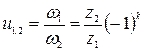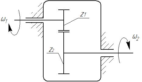Множитель (-1) k позволяет определить направление вращения первого зубчатого колеса по отношению к последнему. Так, для одноступенчатого редуктора (Рис. IX. 10) общее передаточное отношение u определяется: