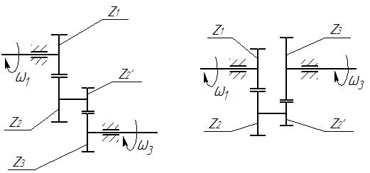 Аналогично рассчитывается общее передаточное отношение для рядной двухступенчатой передачи (Рис. IX. 11):