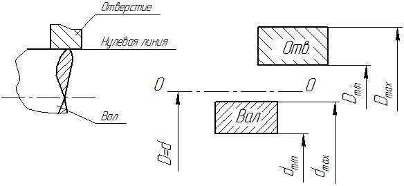 На практике допускается отклонение реального размера от номинального в определенных пределах, т.е. вал (или отверстие) может быть изготовлен с некоторыми отклонениями (Рис. X. 2).
