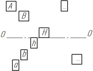 Все детали машин, рассматриваемые механикой, делятся на отверстия и валы. Отверстие – элемент (или деталь), охватывающий ответную деталь. Вал - элемент (или деталь), охватываемый отверстием. Размер (номинальный) посадочного места для отверстия обозначается заглавной латинской буквой (А, В, С и т.д.), для вала – латинской прописной (а, b, с и т.д.) (Рис. X.1).