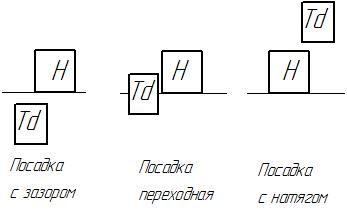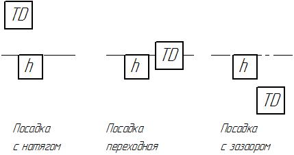 Определенное назначение поля допуска определяет посадку в данном сопряжении. В соответствие с ГОСТом посадки делят на посадки с зазором, с натягом и переходные посадки, допускающие наличие как зазора, так и натяга.