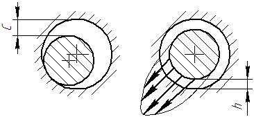 Суть расчета сводится к определению величины подъема h вала (Рис. XI. 4), определяемой соотношением высот неровностей шероховатостей Rz вала и отверстия: