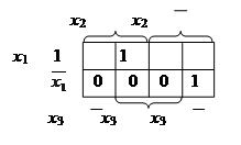 Форма представления функции f (x 1, x 2, x 3) существенно зависит от выбора ее значений на запрещенных наборах, Например, для заданной функции, выбирая ее запрещенные значения равными нулю, можно получить минимальную ДНФ в виде