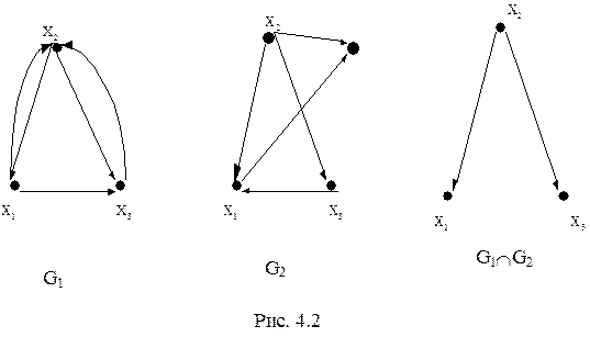 Графы G1(X1,E1), G2(X2,E2) и их пересечение приведены на рис 4.2.