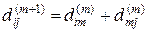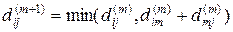 длину кратчайшего из путей из xi в xj с промежуточными вершинами из множества { x 1, …, xm }. Тогда можно получить следующие уравнения