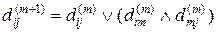 Уравнения (2) и (3) позволяют легко вычислить матрицу расстояний [ dij ] между всеми парами вершин графа G (X, E). На первом этапе согласно (2) составляем n ´ n матрицу