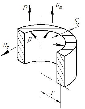 Прочностью тонкостенных оболочек занимался Лаплас. Теория Лапласа показывает связь формы и габаритов оболочки с давлением. Радиальная толщина Sr обечайки аппарата, подверженная действию внутреннего давления р, рассчитывается по формуле: