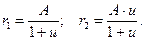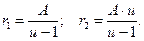 Формулы (5) позволяют определить радиусы катков фрикционной передачи по заданным A и u. Передача может быть выполнена с внутренним касанием катков (рис. 2). В этом случае оба вала будут вращаться в одном направлении; радиусы колёс в этом случае равны: