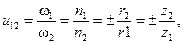 Передаточное отношение определяется по формуле (3). Практически отношение радиусов удобнее заменять отношением чисел зубьев. Так как расстояние между соседними профилями зубьев сопряжённых колёс должно быть по начальным окружностям одинаковым, то число зубьев z 2 на колесе 2 так относится к числу зубьев z 1 на колесе 1, как длина начальной окружности колеса 2 относится к длине начальной окружности колеса 1, т.е.