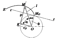 Из свойств эвольвенты следует, что отрезок KM равняется дуге KMO, т.е. r = È KMO. В свою очередь дуга È KMO = rO (q + a), откуда