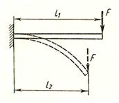 В очень же гибких стержнях (рис. 2) возникают столь значительные деформации,что с этим нельзя не считаться даже при определении опорных реакций. Определение же нового расстояния l 2, значительно отличающегося от первоначального l 1, представляет собой довольно сложную задачу.
