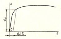 Ряд материалов при растяжении дает диаграмму без выраженной площадки текучести: для них устанавливается так называемый условный предел текучести.