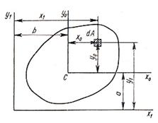 Пусть оси x0y0 —центральные оси (рис. 3) и момент инерции Ix0y0 известен. Найдем центробежный момент инерции относительно осей х 1и у 1.