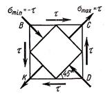 Так как отличны от нуля два главных напряжения, то сдвиг представляет собой частный случай двухосного напряженного состояния.