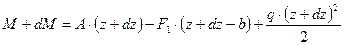 Вычитая (а)из (б), получаемприращение изгибающего момента