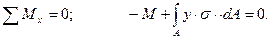 Установив закон распределения напряжений, можно определить и их значение из уравнений равновесия. Рассмотрим равновесие части балки, находящейся под действием внешнего момента