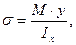позволяющую определить нормальное напряжение в любой точке поперечного сечения балки по известным изгибающему моменту