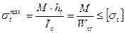 — расстояние до наиболее сжатого волокна. Тогда наибольшее растягивающее напряжение при изгибе