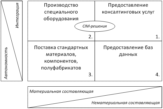 Первое направление основано на соотношении критериев материальная и нематериальная составляющие и интеграция с заказчиком или автономность.