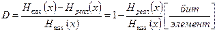 Для кодирования 32 букв русского алфавита, при условии равновероятности, нужна 5 разрядная кодовая комбинация. При учете ВСЕХ статистических связей реальная энтропия составляет около 1,5 бит на букву. Нетрудно показать, что избыточность в данном случае составит