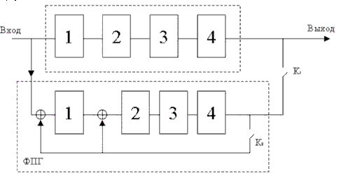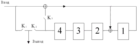 1. На первом этапе К1– замкнут К2 – разомкнут. Идет одновременное заполнение регистров задержки и сдвига информ. элементами (старший вперед!) и через 4 такта старший разряд в ячейке №4