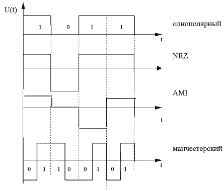 Недостатки: потеря синхронизации при длинных сериях элементов одного знака.